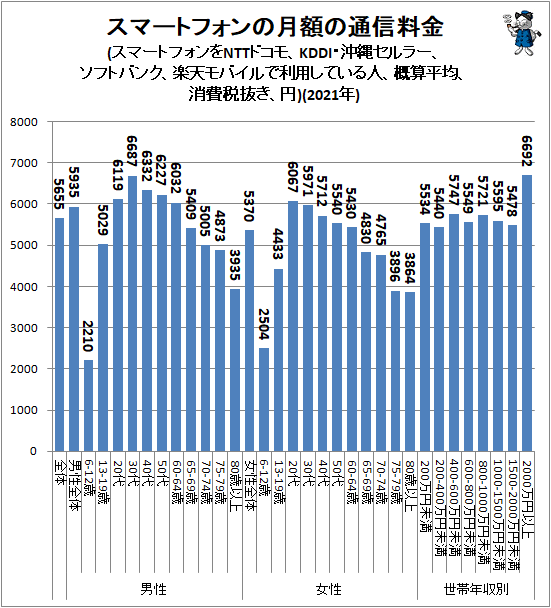 全体平均は5,655円で、従来型携帯電話の1.7倍程度。