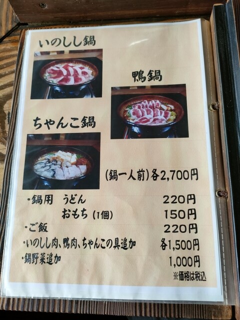 食べログの評にもありますが、フツーの空腹だったら鍋物1人前、ご飯1膳だけで2人分じゅうぶん、締めにうどん1玉を追加すると2人してお腹いっぱいになれます。気分的にはいのしし肉追加したかったですが...