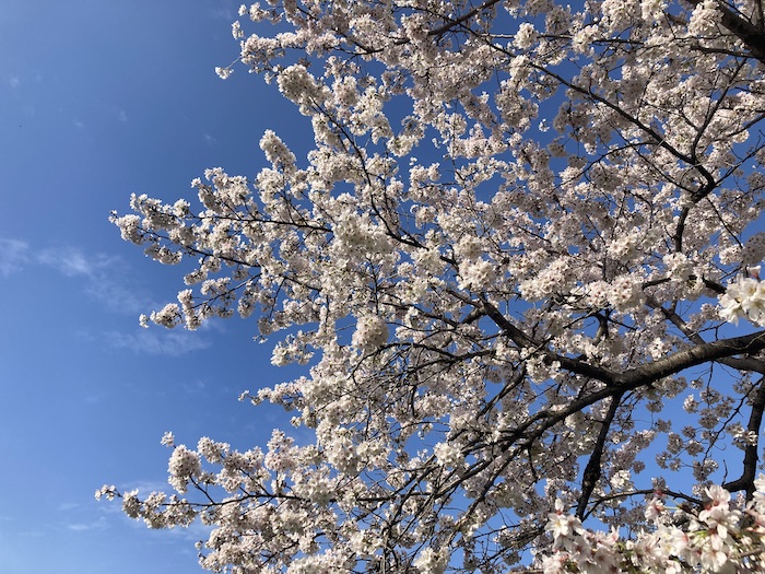 先日の雨降りの合間に覗いた青空に大宮公園の満開ソメイヨシノを観に散歩に行きました。今年は満開ながらなんだか物足りなくて、数輪が固まってポップコーンが弾けたような花付きの木は少ないようでした。