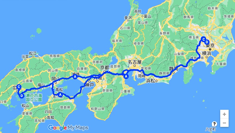 この時点で「2023 我が家の夏旅行」の日程とルートは確定。途中で2泊入れる宿は、8月に入ってから料金と使い勝手に割り切って”兵庫県姫路”と”三重県亀山”に予約を追加しました。