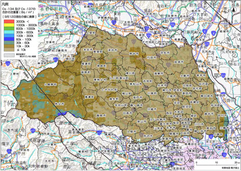 放射能汚染マップ9月末現在の状況〜文部科学省による埼玉県の航空機モニタリング結果発表