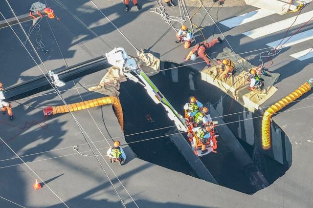 道路陥没の原因は道路直下10mに埋設されている下水道管の破損によるものと確認されましたが....この下水道管は1983年に敷設されたもので、鉄筋コンクリート製の直径4.75メートルの管。 耐用年数は約50年とされているおり埋設から42年が経過して老朽化が懸念されていたと言う。