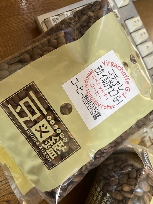 先日の誕生日につれあいからモカ・イルガチェフェのコーヒー豆:1kgのプレゼントをもらいました。
