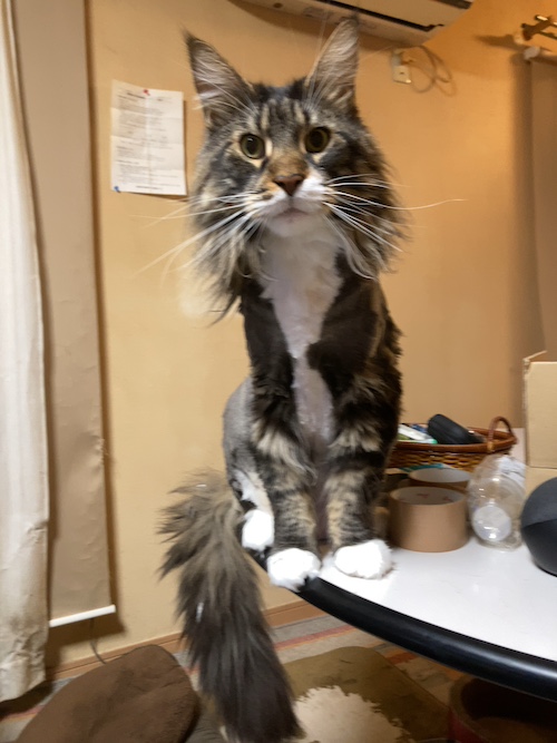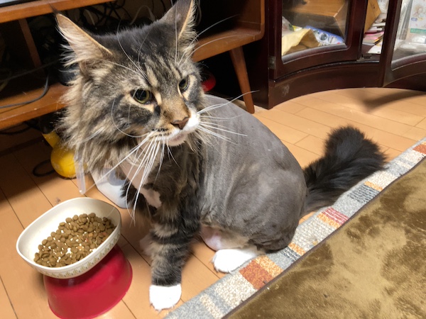 GW開け初夏、メインクーンQooのサマーカット〜「随分小さくなった..」と錯覚する