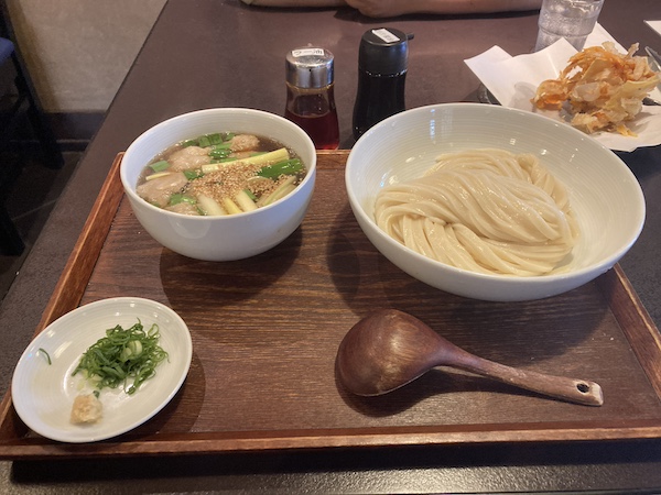 「牛ホルモンつけ汁」うどんとかき揚げをオーダー