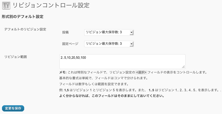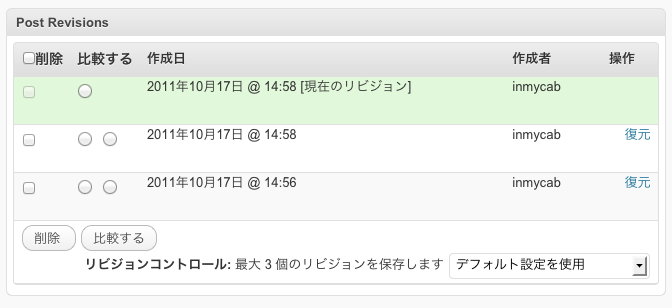 プラグイン導入以前のリビジョンについては設定数が反映されない(余分なものを削除してくれない)ので手動で削除することになります。リビジョン履歴欄も変更されます。各リビジョン内容を選択して比較表示してくれる機能もありますが参考程度のおまけかな、と。