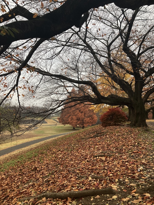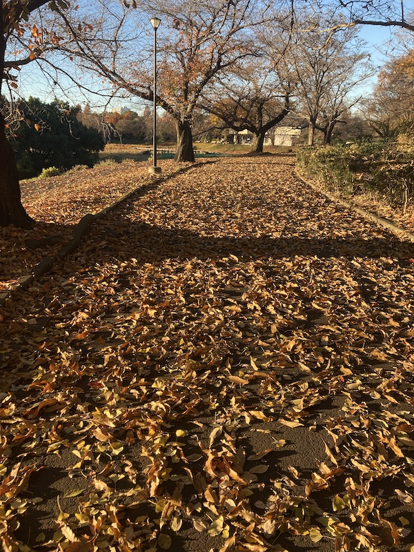 昨夜の強風で一気に落葉が進んだ模様...公園のアスファルト道が全面隠れております。