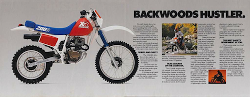 ![]() 1980 XR200 「軽くてスリム、壊れずタフで、自由に操れる!」バイクとして認知され、排気量を195cc(65.5x57.8)に拡大して1psの出力向上(18→19ps)を果たします。その後モノショックのXR200R登場以後も1984年までツインショックのXR200として併売されていきます。