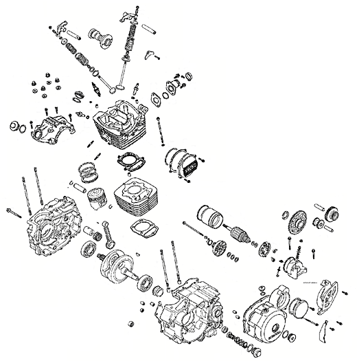 1971 Benly SL125S 排気量を122cc(56x49.5mm)に拡大したエンジンは、前年発表のSL90からのボアアップ版ではなく再設計されています。(ピストンピン径1mmアップ、クランクケース内部の仕様変更その他)理由は明らかでありませんが、排気量増時の強度アップによるものと言われています。