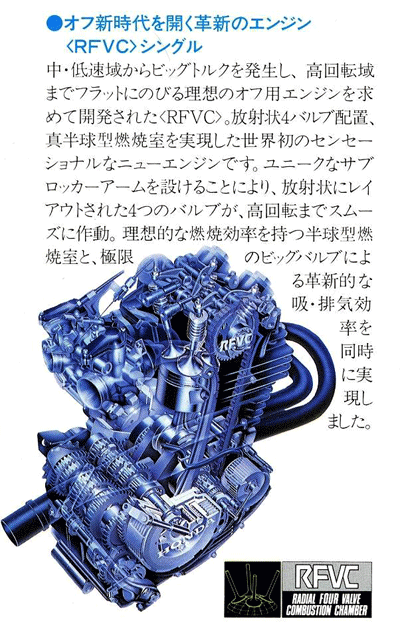 ここでは、この類い希なる2バルブシングル縦型OHCエンジンを、XR200Rに連なる変遷として眺めてみます。