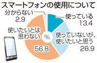 今後お金をふんだくれるビジネスモデルに躍起な通信キャリアがお得意様のマスコミは「スマホブーム本格過熱」とか煽った見出しをそのまま垂れ流していますが、実際の利用状況は携帯電話全体の10%をやっと超えたに過ぎず、なにより世代間での温度差は相当なモンだというアンケート結果も発表されています。