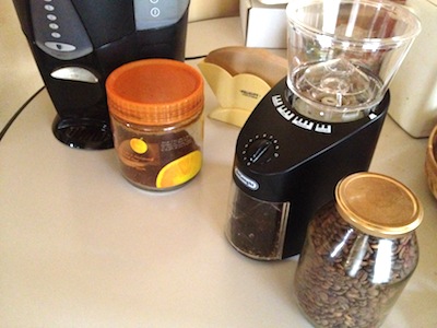 毎朝タンク一杯(カップ12杯分)のコーヒーを落としてるので、その度にコーヒー豆を挽くのも面倒...というわけで普段は珈琲屋さんで挽いてもらったモノを買っています。しかしながら、貴重なモカの豆を不自由なくいつでも買えるのは近所の豆問屋さんのおかげなので、もっと味わい深い飲み方しないと怒られるなぁ...などと久しぶりにコーヒーミルを物色しているのをつれあいも知っていたので、多分こんなことになるだろとは想像しておりました。