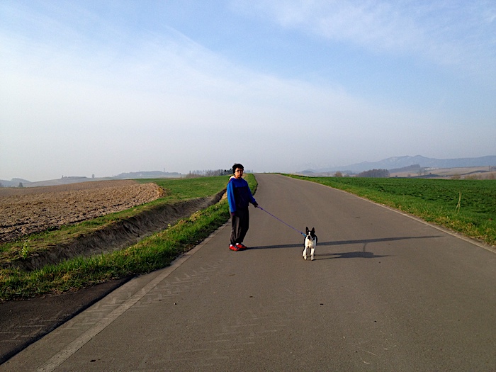 本日の宿泊地は美瑛町の丘にあるペットと泊まれるコテージ・ペンション:ジャガタラさんです。露天風呂があって目の前は大雪・十勝山系の山並み、丘の上なので夕涼みにも素敵なロケーションです。そうそう今日は「31度の夏日」でした。風景にはそこここに残雪が残っているのに夏日、GWのいまならではの1日でした。