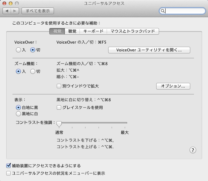 システム環境設定>ユニバーサルアクセス>視覚画面で