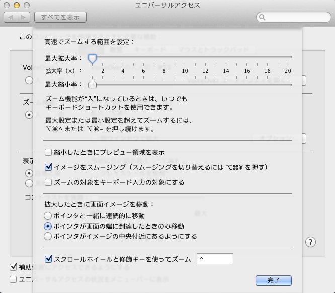 ・デスクトップズームの設定