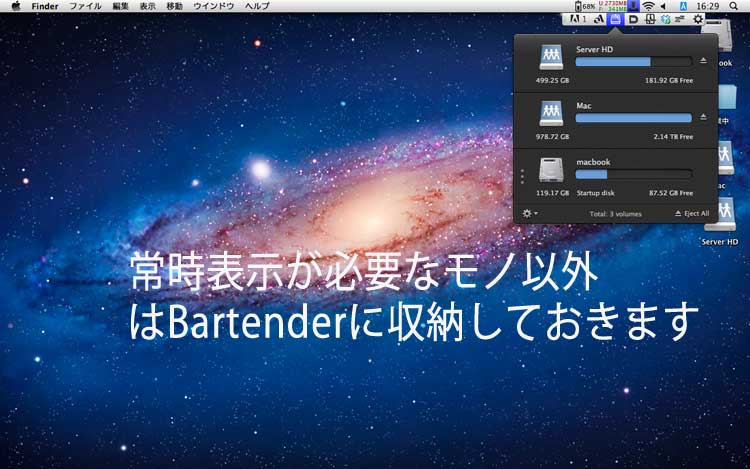 OSXデフォルトのメニューバーアイコンも整理しないとたくさん並んでいて