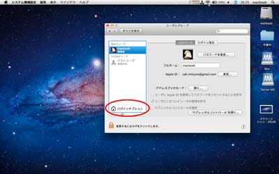個人所有があたりまえな時代なので幾つもユーザー登録してるヒトはいないでしょ、だったら右端のユーザー名(もしくはアイコン)はじゃまモノです。システム環境設定「ユーザーとグループ」にある「ログインオプション」を開きます。