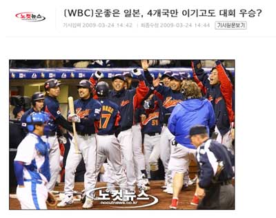 10回表は「最後はイチローを倒してから...」の想いがあったんでしょうか、そんな意味でも韓国は悔しい負け方をしましたが、最後は本当の勝負にこだわった、あっぱれな負けっぷりともいえますね。これだけ日本で速報があがってたので、さっそく韓国ではどんな風に結果を伝えてるんだろうと覗いてみました。(クリックで翻訳ページを表示)