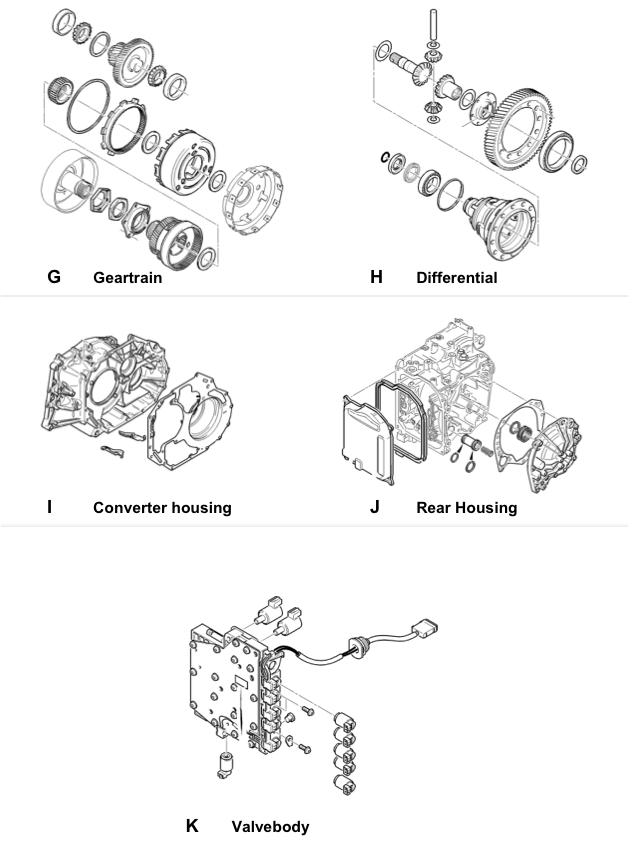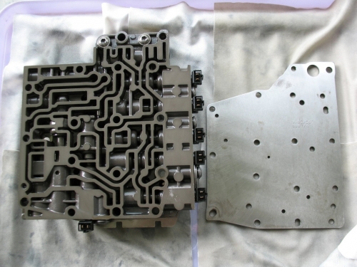 ATトラブルが発生しやすいダウンシフトバルブとATFオイル循環経路が張り巡る「Valvebody」部分。