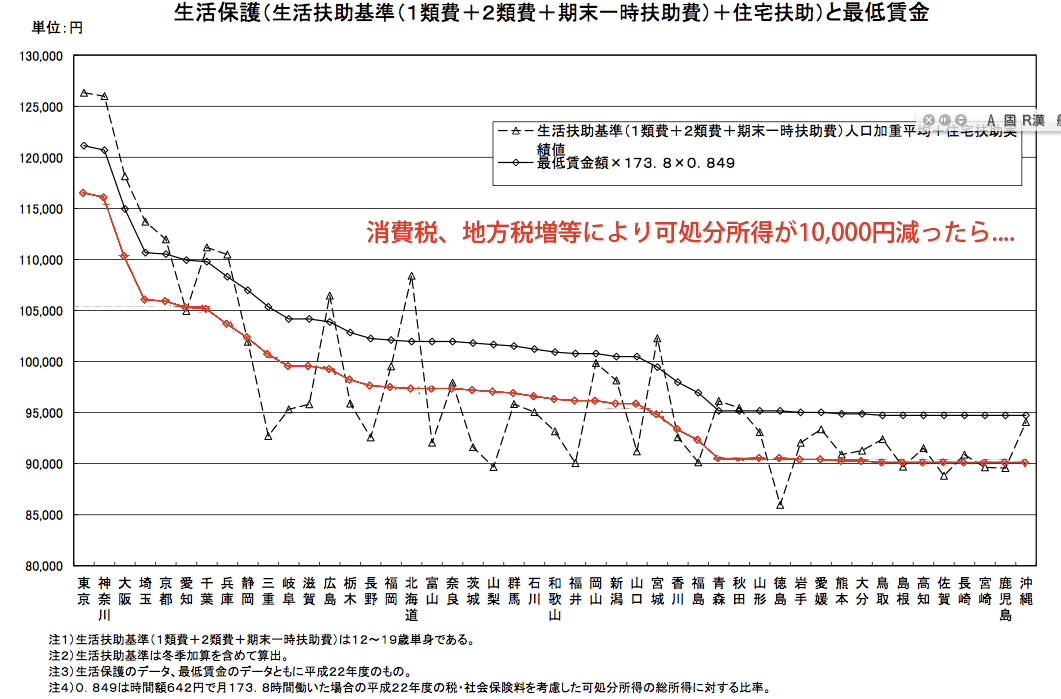 今後、最低賃金生活は生活保護水準を大幅に下回るのではないか〜増税ラッシュの家計負担