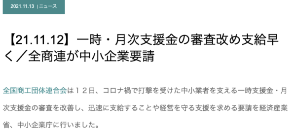 中小企業向けに新設された「事業復活支援金」の申請受け付けが始まりました。「売上高減少率 30%」事業者も対象になったのでウチも申請予定です。